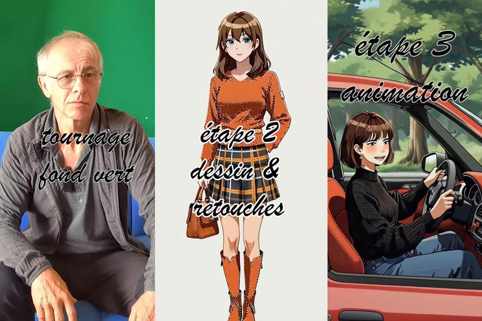 jeu d’acteur réel, outils numériques avancés, 3D technique et finalisation dessinée.